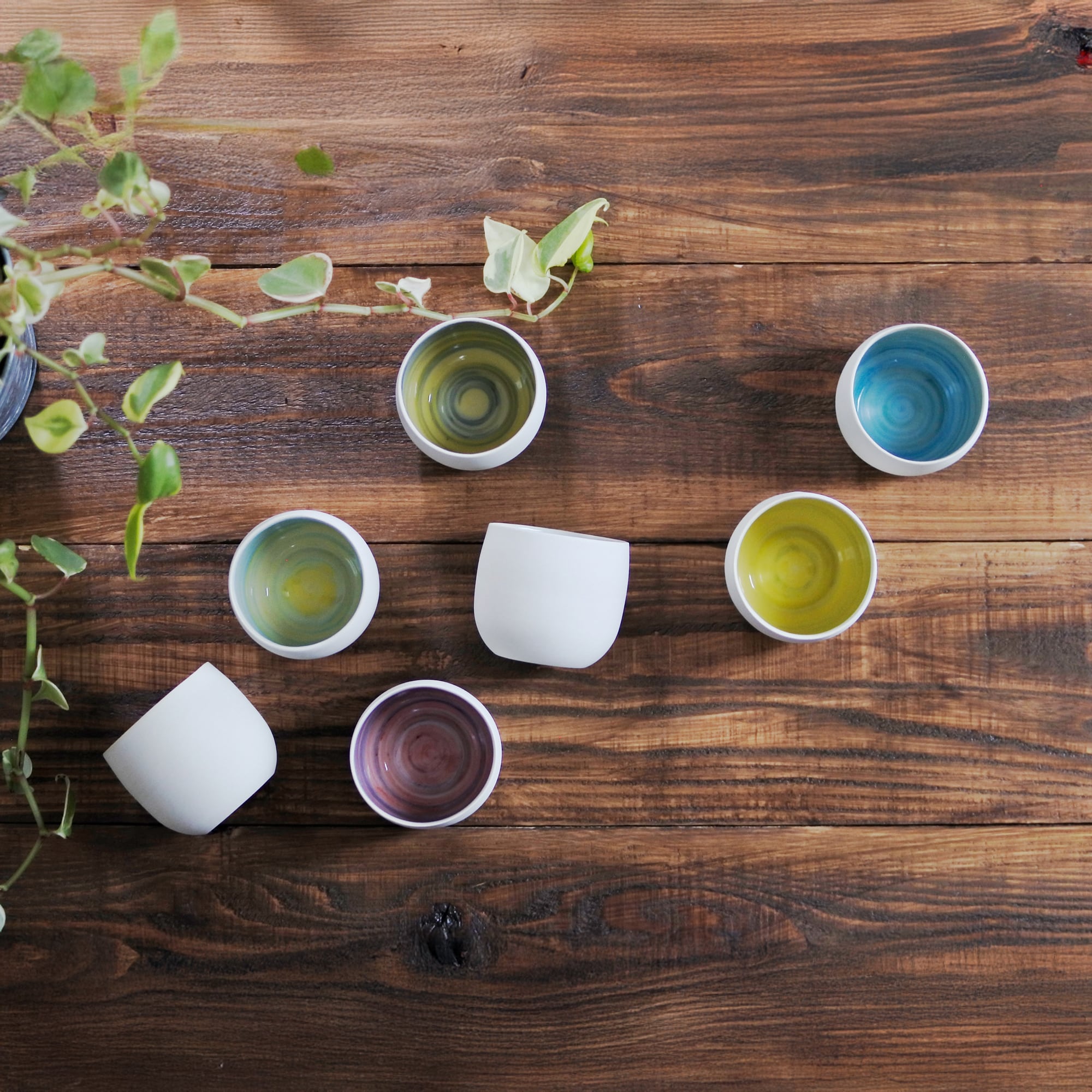 型の制作から成形、絵付けまで、ろくろに乗せてぐるぐるぐるぐる…やきものっていっつもぐるぐるまわってるなぁと思ってたら、こんな模様になりました。